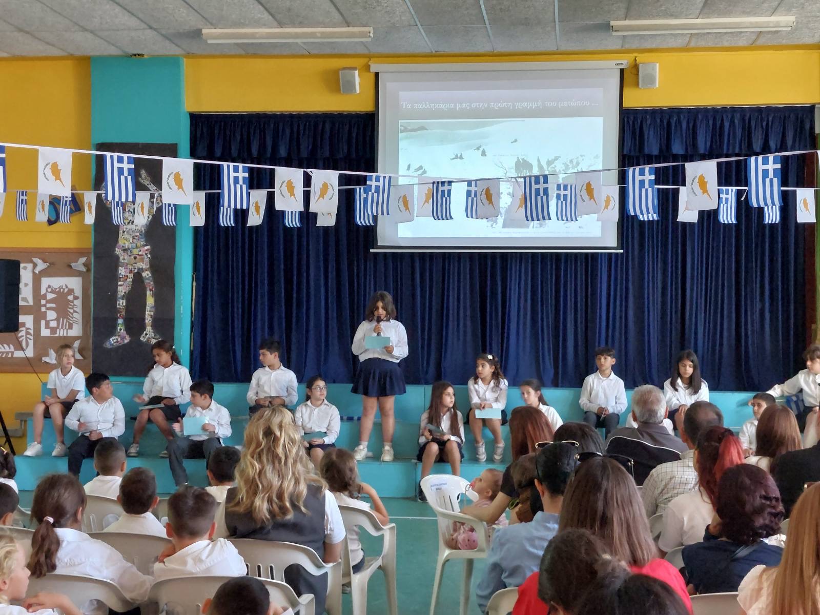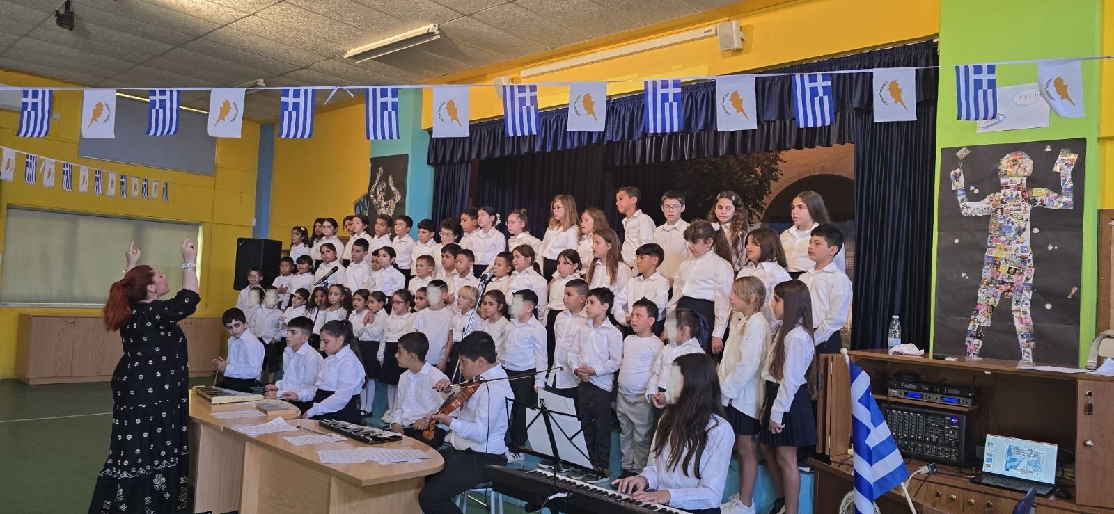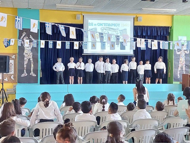 Στα πλαίσια του εορτασμού της εθνικής επετείου της 28ης Οκτωβρίου 1940, οι μαθητές και μαθήτριες της Β΄ τάξης, της Δ’ τάξης καθώς και της Στ΄ τάξης έστειλαν ένα ηχηρό μήνυμα ειρήνης μέσα από ποιήματα, θέατρο και απαγγελίες. Στον εορτασμό συμμετείχε όλο το σχολείο με τραγούδια και χορό.