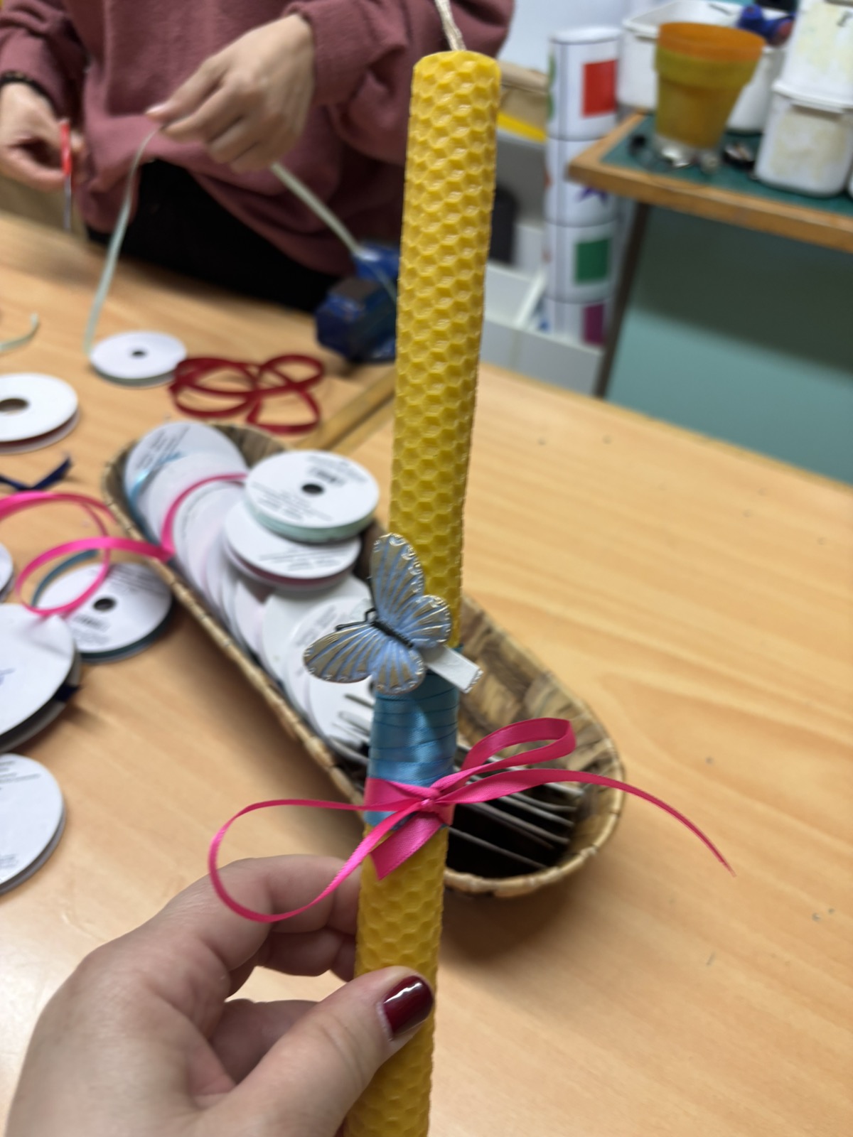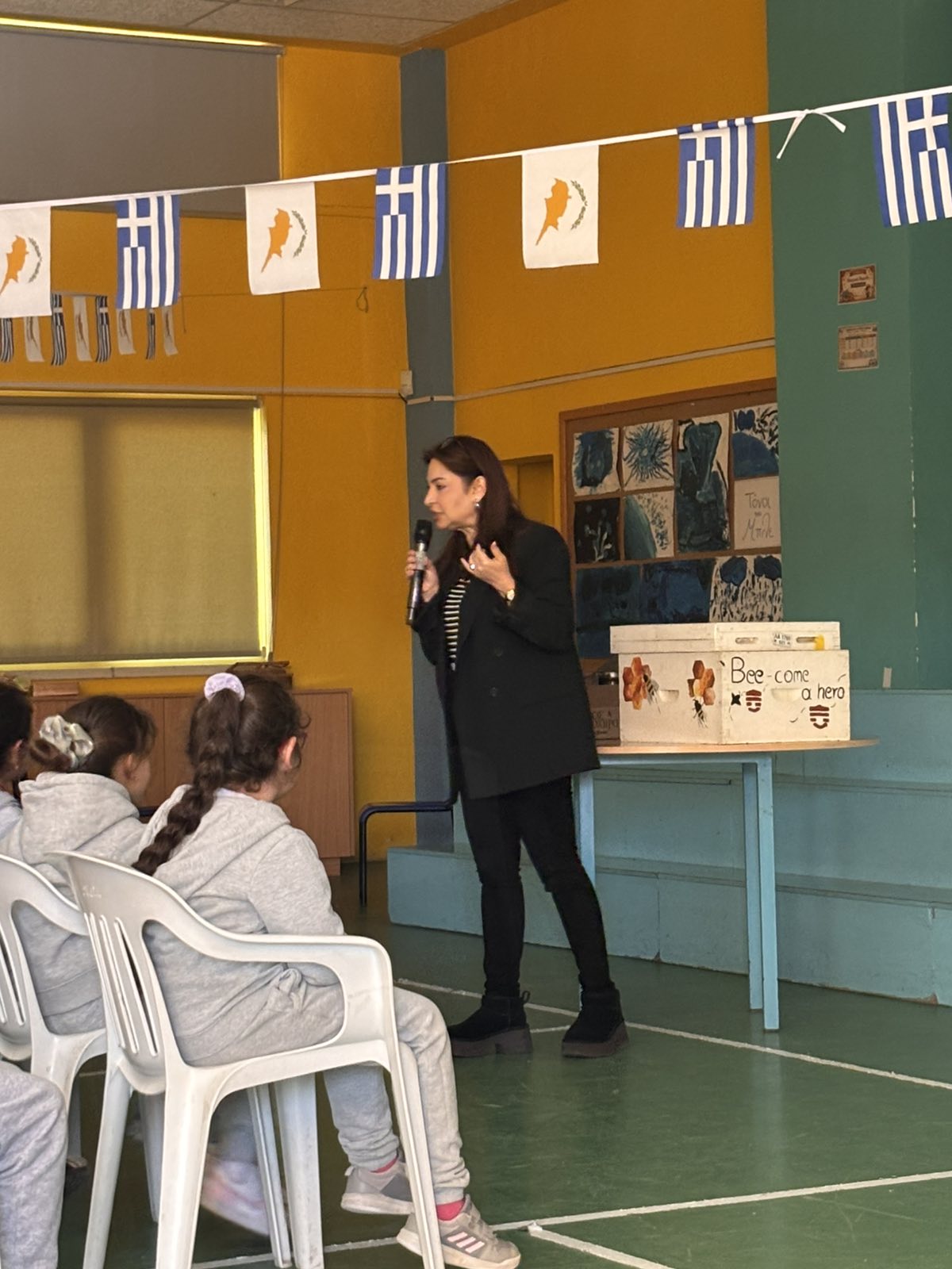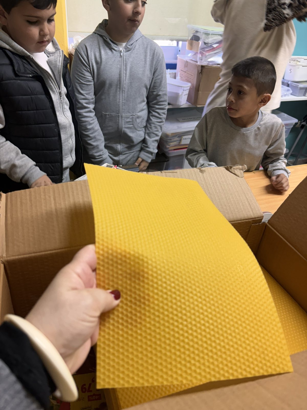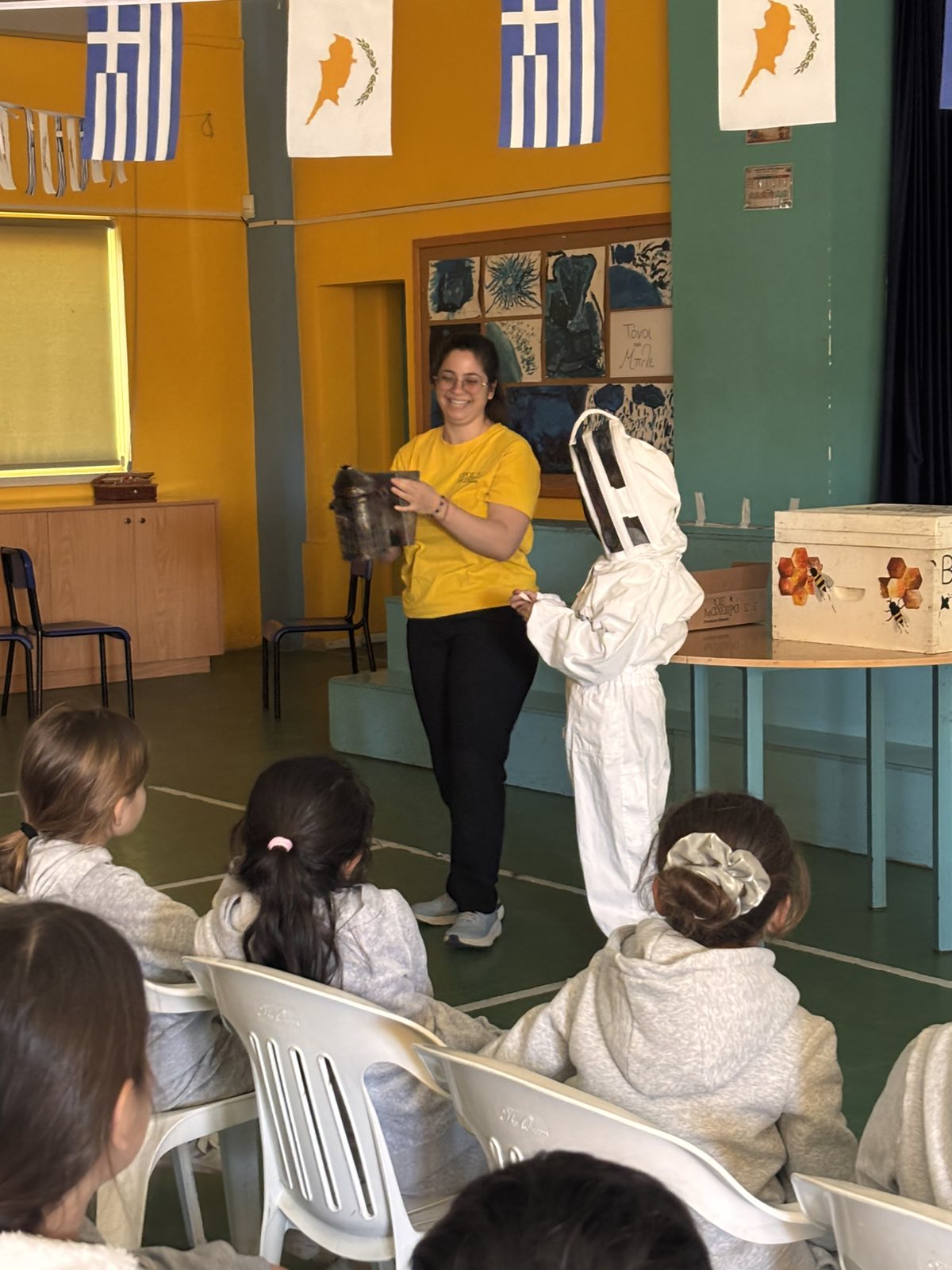 Στα πλαίσια του προγράμματος «Σχολεία Πρεσβευτές Πολιτισμού - Παιδιά Πρεσβευτές Πολιτισμού» επισκέφθηκε το σχολείο μας η κυρία Δέσποινα Ευαγγέλου από το εργοστάσιο παρασκευής μελιού «Όρος Μαχαιρά». Η κυρία Δέσποινα παρουσίασε στους μαθητές τον κόσμο της μέλισσας και την τέχνη της μελισσοκομίας. Στο τέλος τα παιδιά είχαν την ευκαιρία να κατασκευάσουν τη δική τους πασχαλινή λαμπάδα από φυσική κηρήθρα.